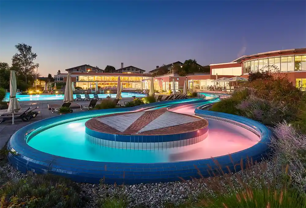В 10 минутах езды (8 км) от нашего Пансиона находятся аквакомплекс Вацманн Терме (Watzmann Therme). Площадь более 900 m² водной поверхности объединила в себе семейный…