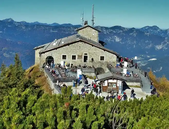 «Орлиное гнездо» (чайный домик Гитлера) расположено на высоте 1843 м над уровнем моря на вершине горы Кельштайн – это «скромный» подарок от Гиммлера фюреру на его 50-летие.